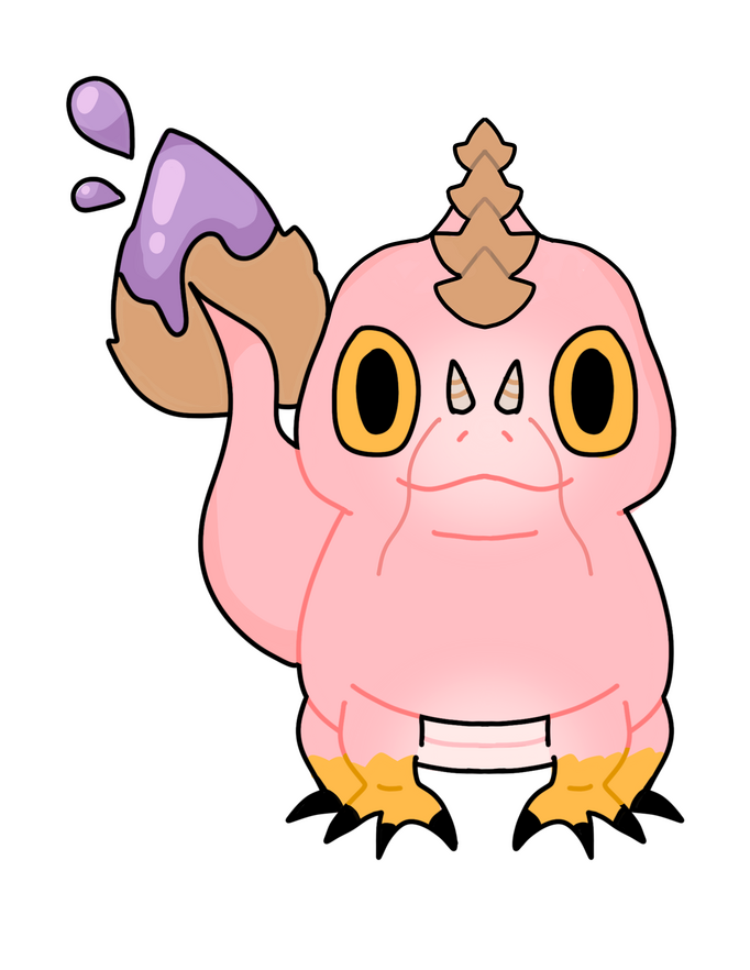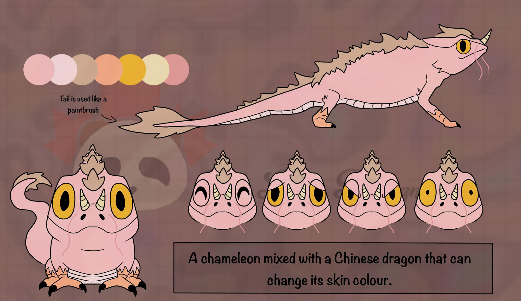 A chameleon dragon capable of changing the colour and patterns of its skin while having a tail that is used as a paint brush.